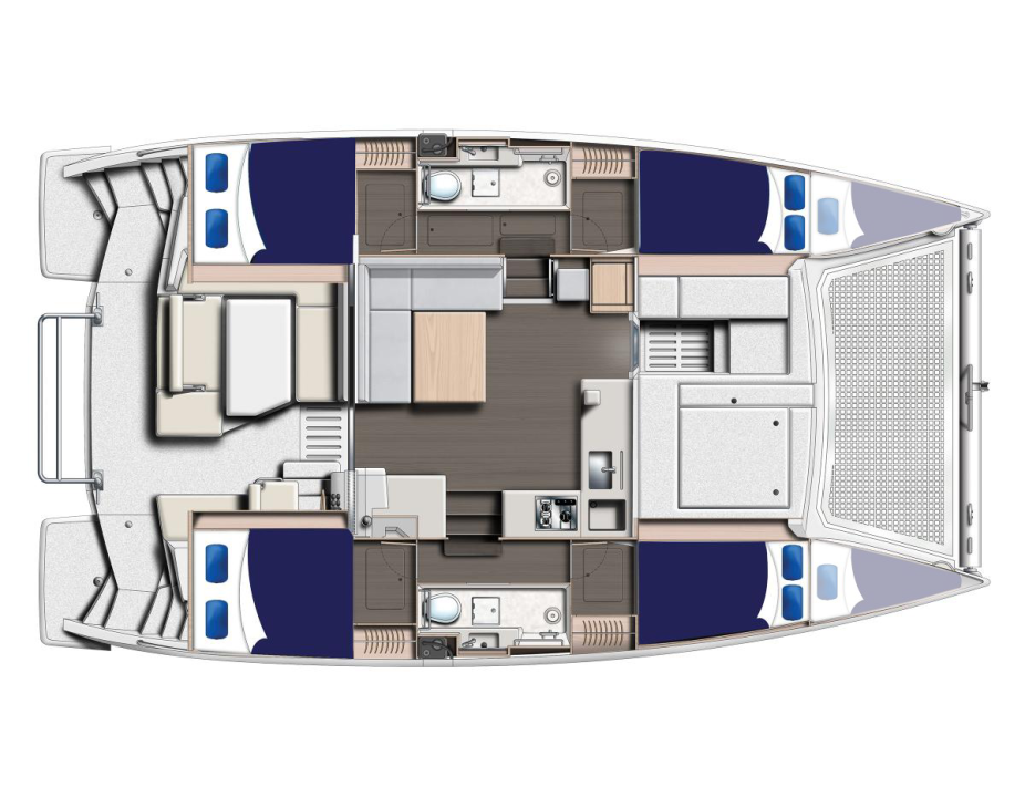 Set sail on an unforgettable voyage aboard The Moorings 4000. Designed by expert naval architects Simonis and Voorgd and constructed by world-renowned builders Robertson and Caine, this innovative sail catamaran sets the standard for contemporary comfort at sea. This 4 cabin layout has 4 double berths, 2 heads, and a convertible saloon.