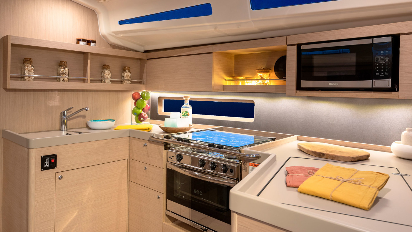 When it comes to performance, the 42.3’s new generation hull promises comfortable, fast sailing in a variety of conditions. The mainsail arch enables you to sail in complete safety and at the same time gives you more space in the cockpit.