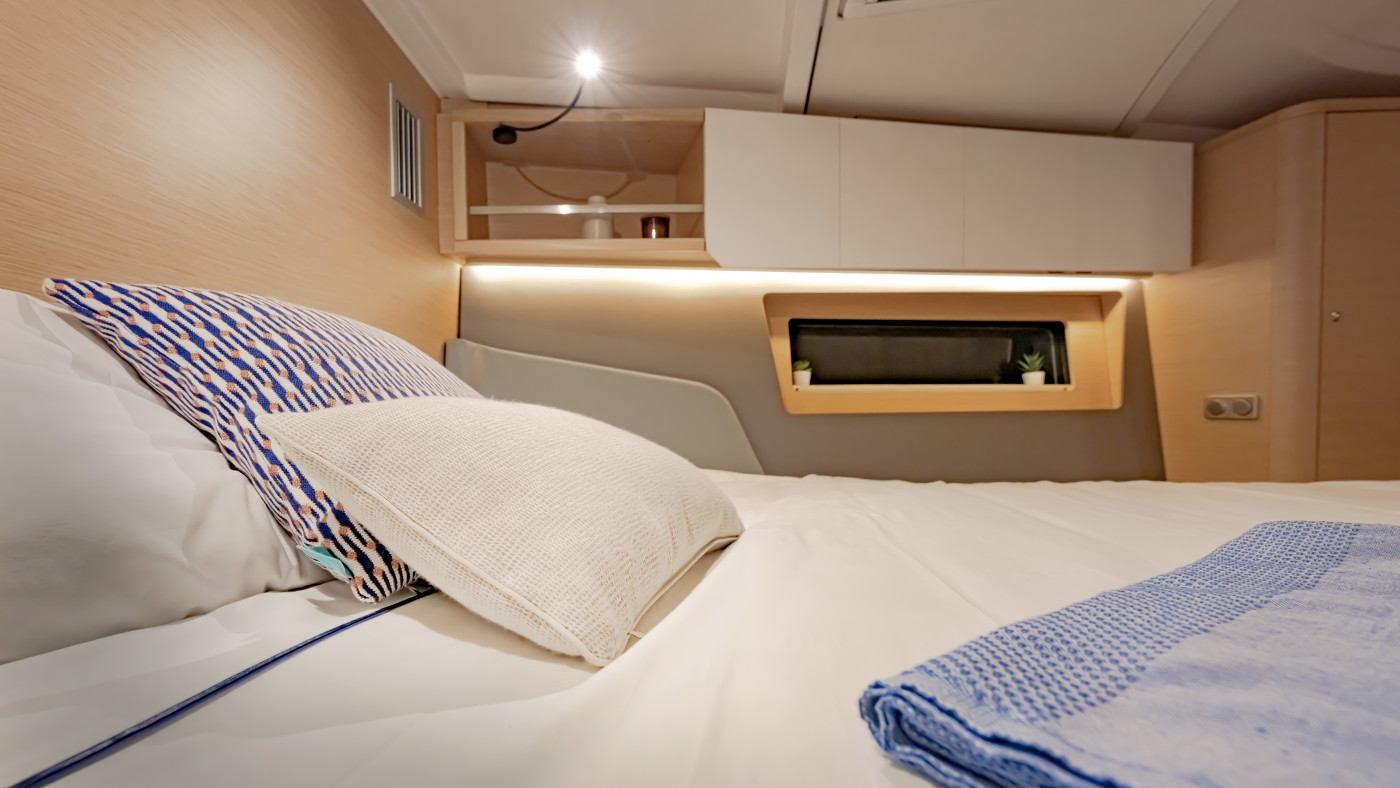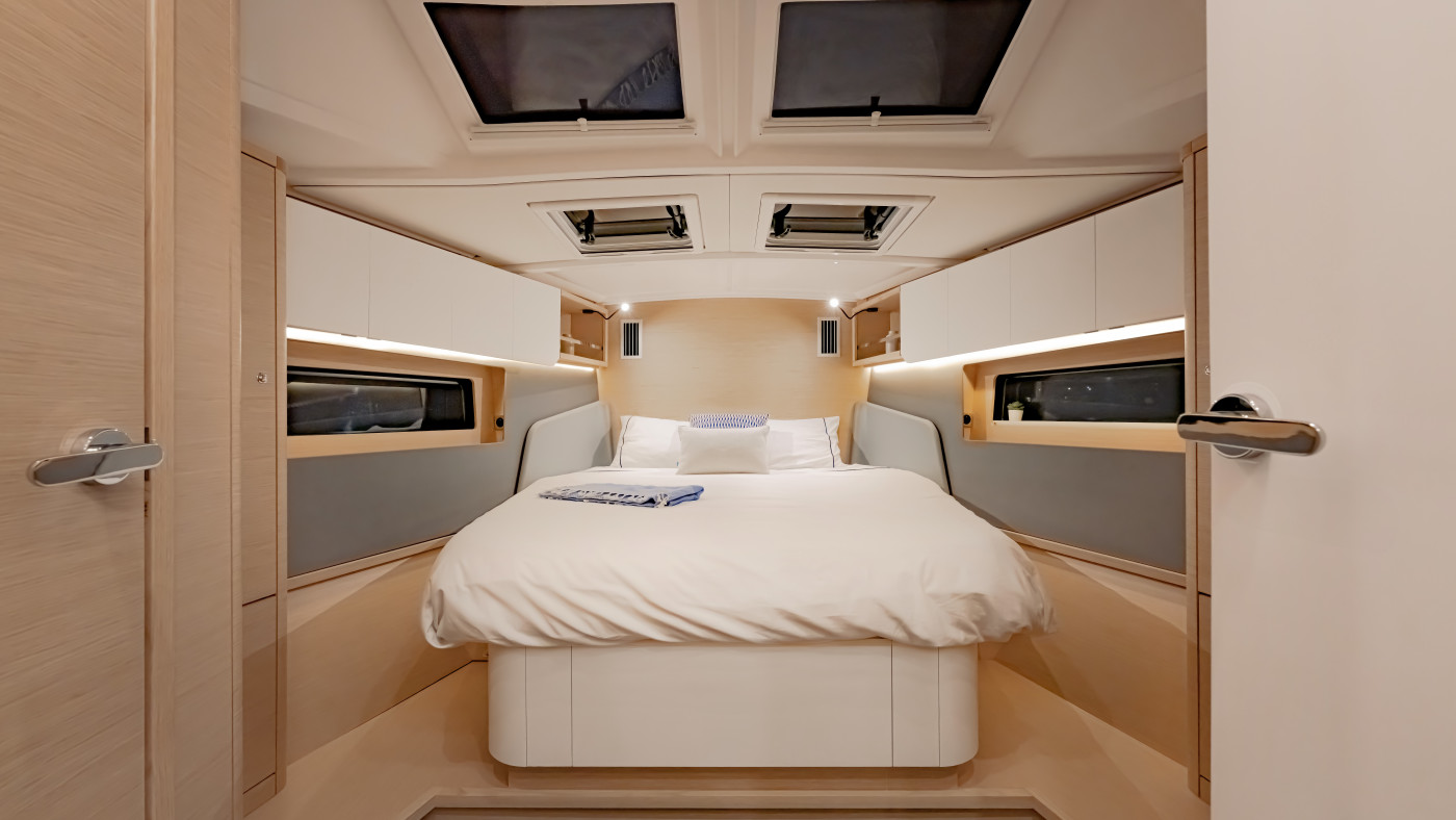 A unique, high-performance, spacious sailing yacht. Whether you’re sailing with your family or with friends, the new The Moorings 44.3 will meet all your expectations. The 44.3’s layout is contemporary and presents the perfect balance between comfort and capability. With three double cabins and a convertible saloon, this yacht can accommodate up to 7 guests.