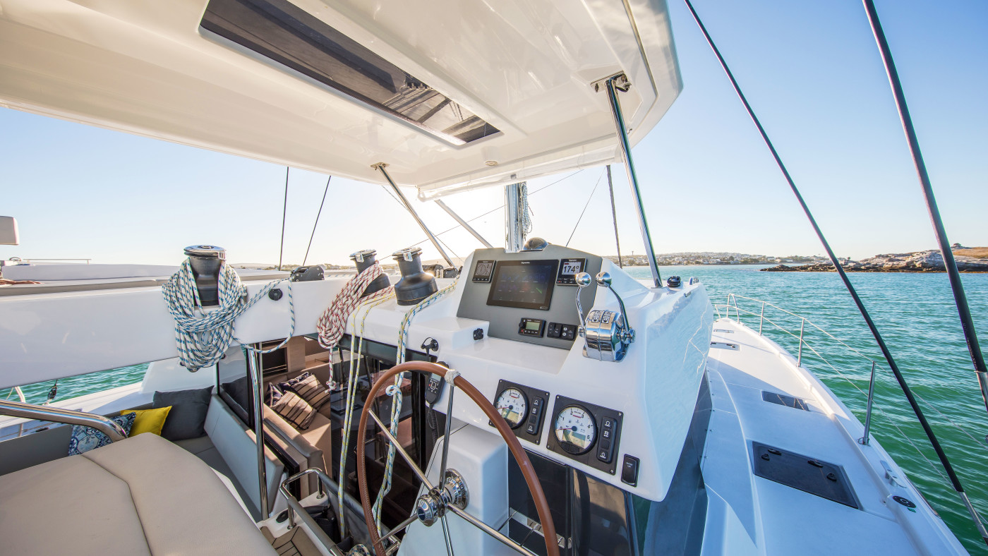 Please note: Teak decking, dinghy platform, and some equipment shown in the 360 Tour may not be available on Charter version of the Moorings 5000.