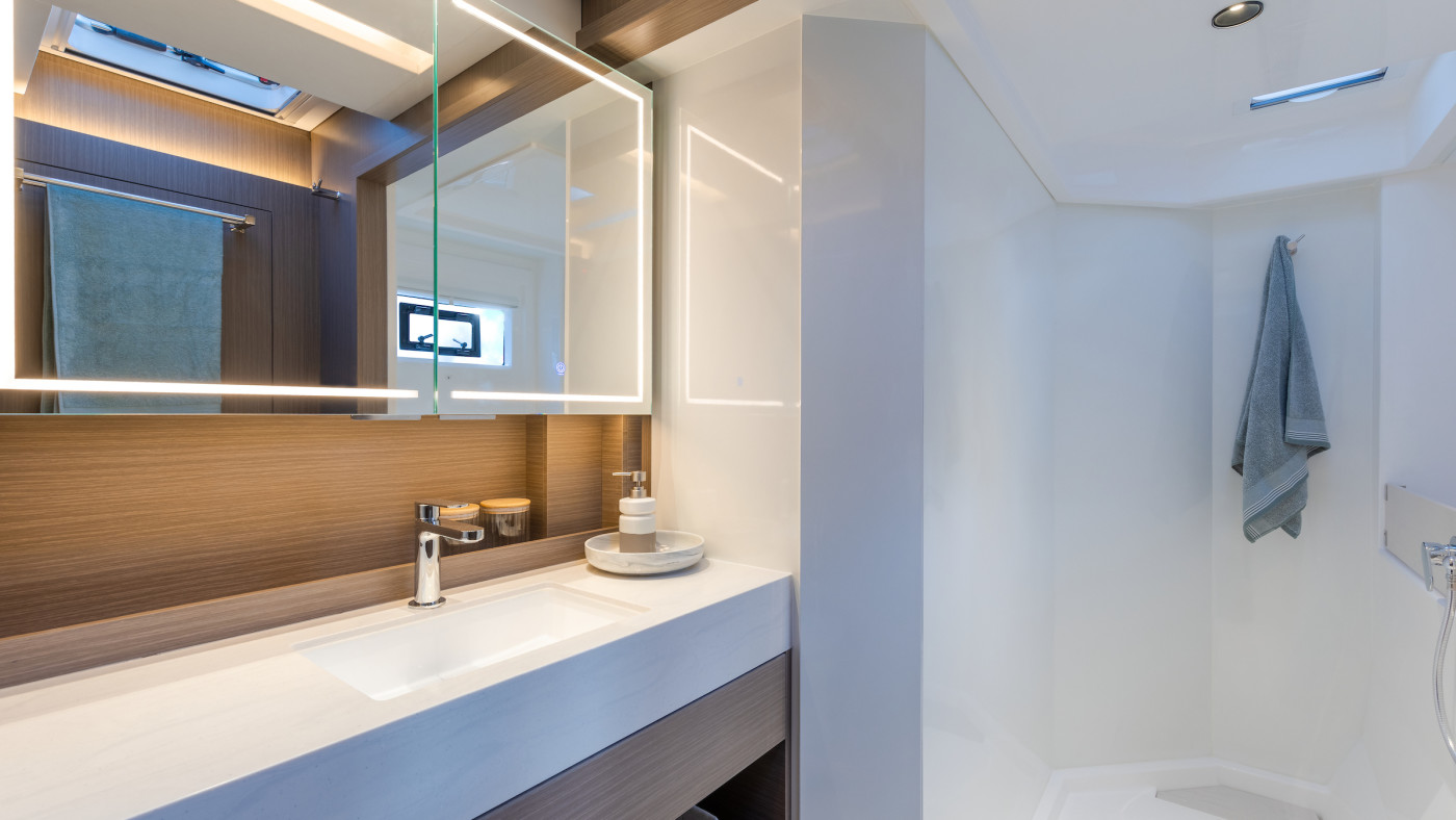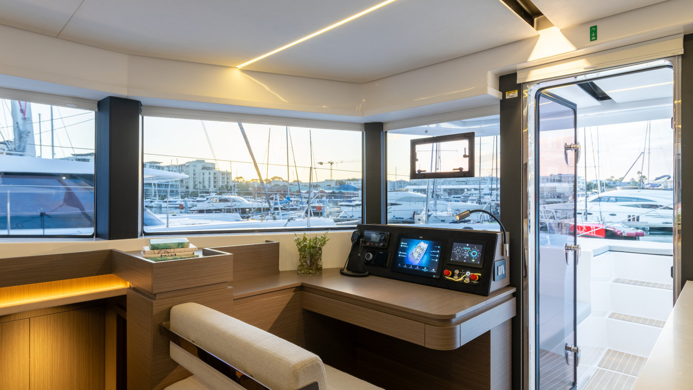 At the helm, a protected, raised steering station keeps the skipper fully connected to both the sailing and social experience. All lines lead directly to the helm, assisted by electric winches for effortless sail adjustments – making this yacht both easy to handle and exciting to sail.