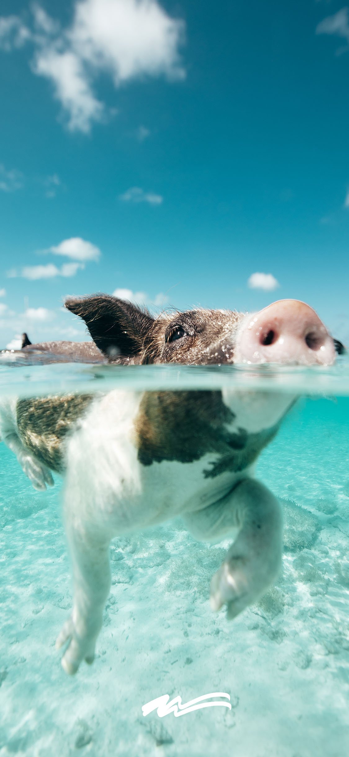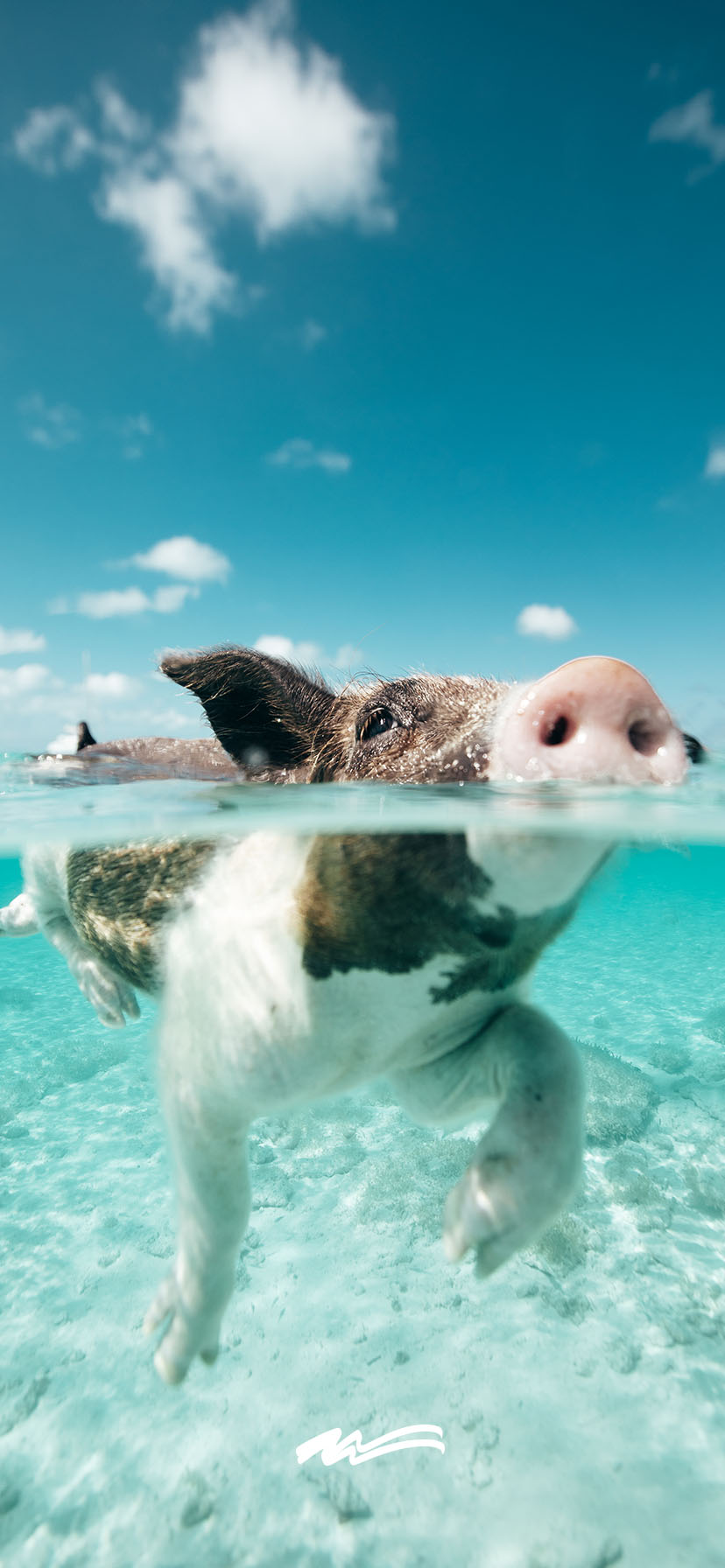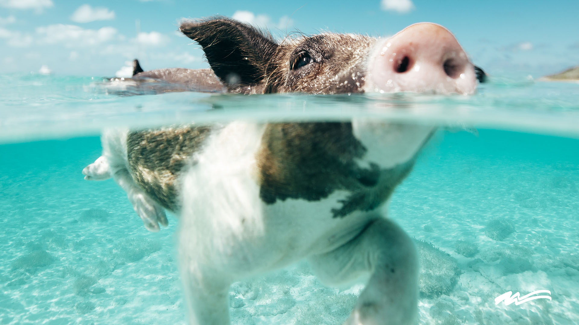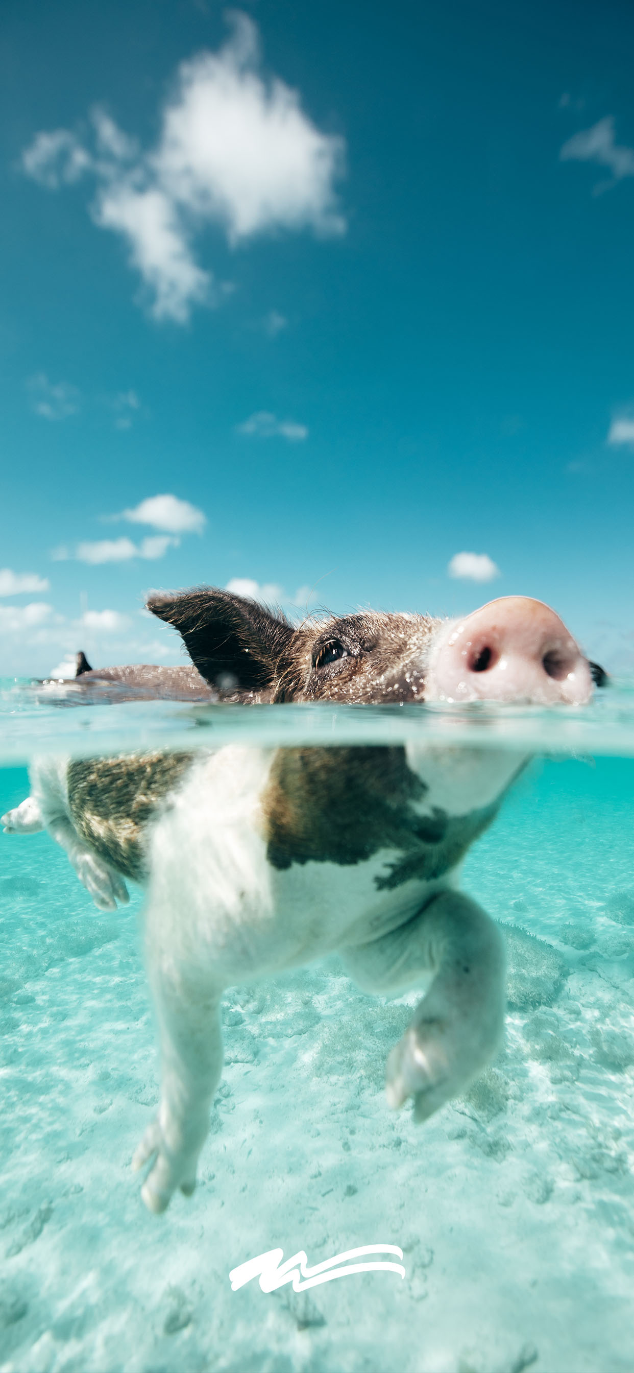 This week’s exclusive Moorings desktop and iPhone background will give you a reason to smile every time you glance at your screen because we’re featuring the unofficial mascot of the Exumas—the oh-so-lovable swimming swines that live on Pig Beach on Big Major Cay. Simply click on any of the links below to download this cute wallpaper for free.