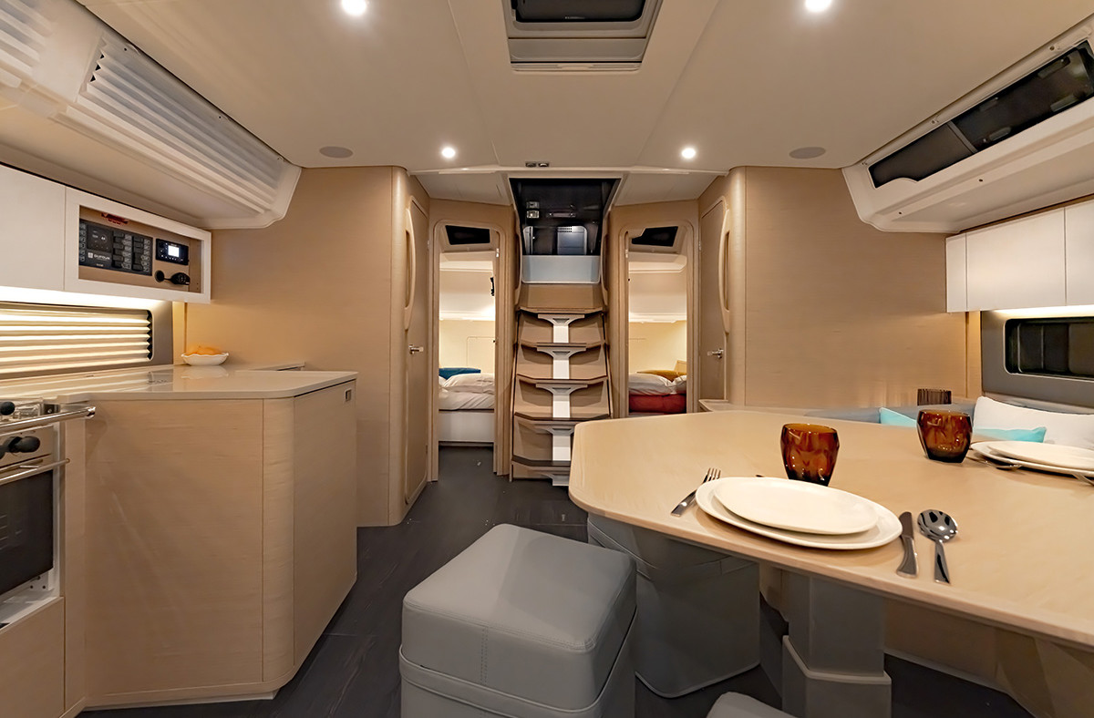 A unique, high-performance, spacious sailing yacht. Whether you’re sailing with your family or with friends, the new The Moorings 44.4 will meet all your expectations. The 44.4’s layout is contemporary and presents the perfect balance between comfort and capability. With 4 cabins and a convertible saloon, this yacht can accommodate up to 9 guests.
